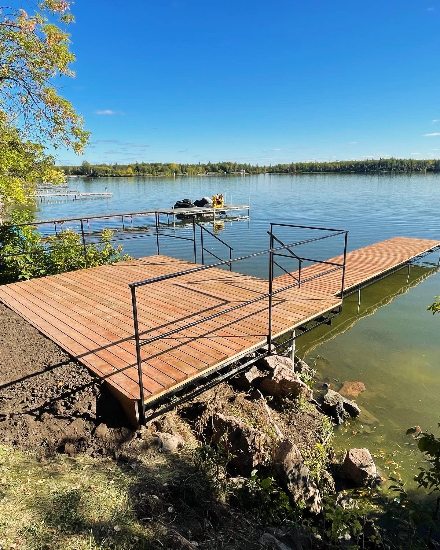 Our docks are manufactured in-house and built to any size or layout. Choose from painted steel, galvanized steel, or aluminum frames, with pressure-treated wood or composite decking to match your needs and budget.